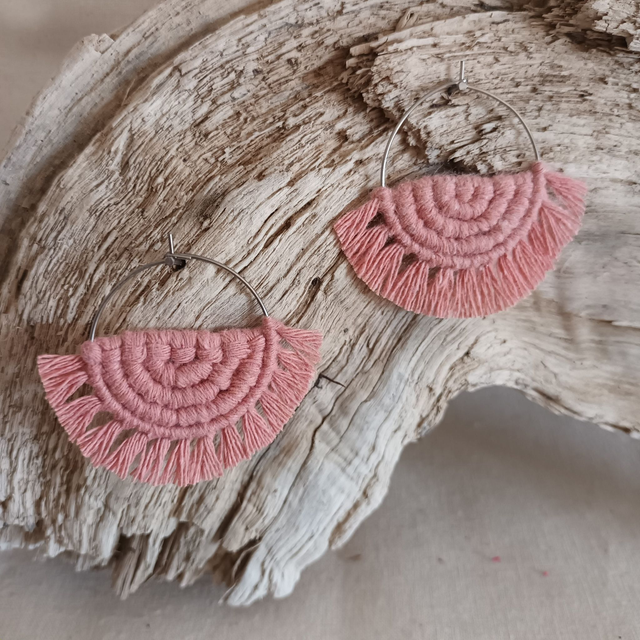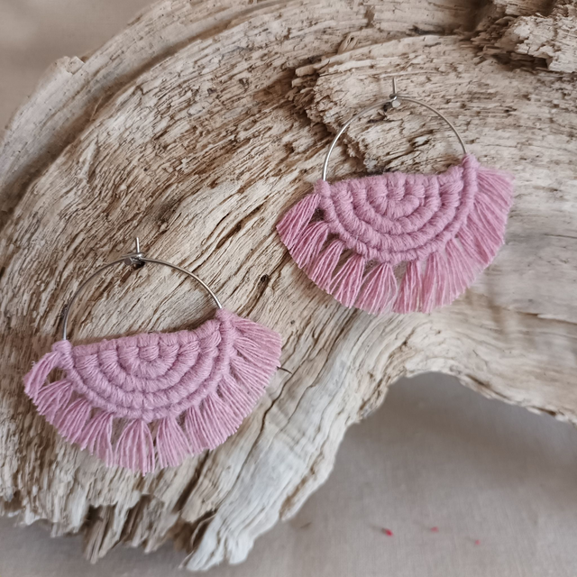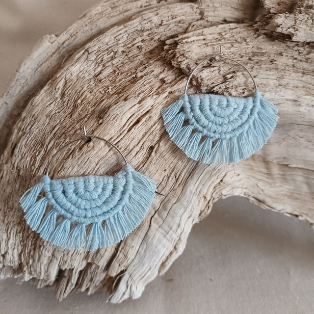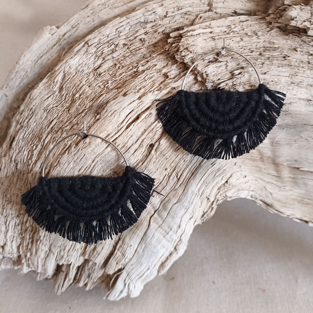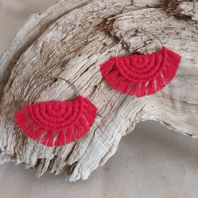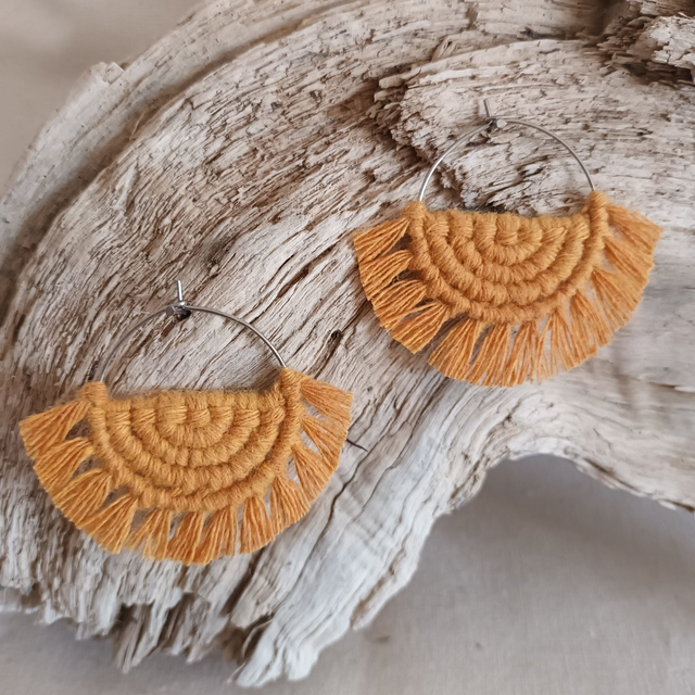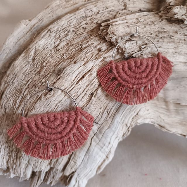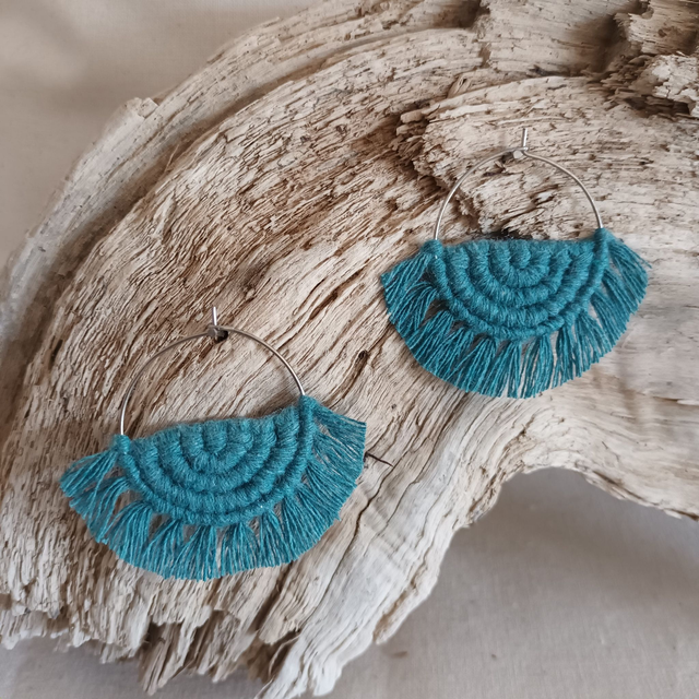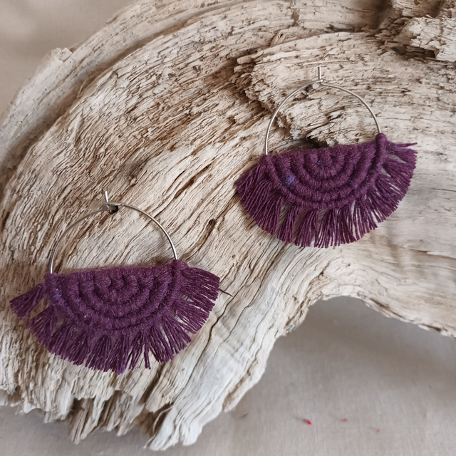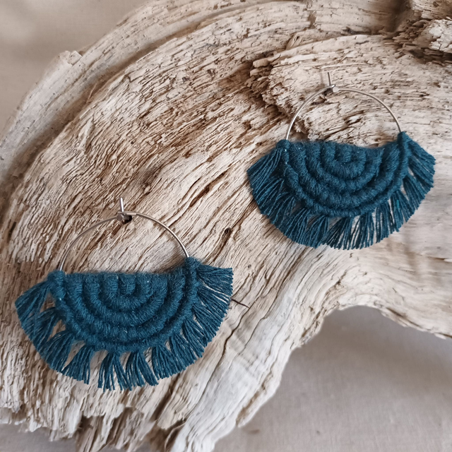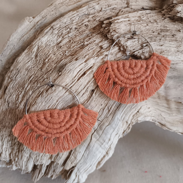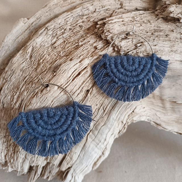 Ce sont des créations artisanales donc chaque paire est unique. Légère et hypoallergénique, cette boucle d’oreille créole en macramé est idéale pour un port quotidien sans irritation.
