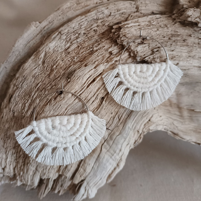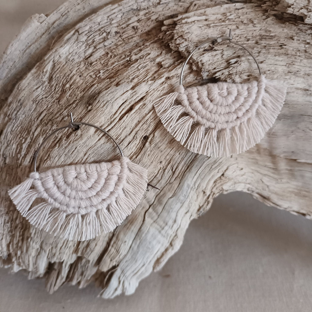 Boucle d'oreille créole macramé argentée