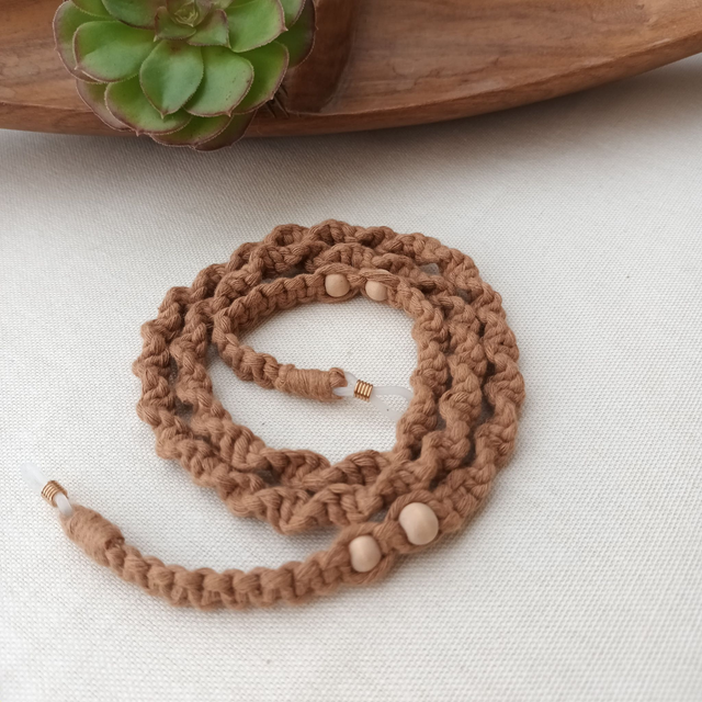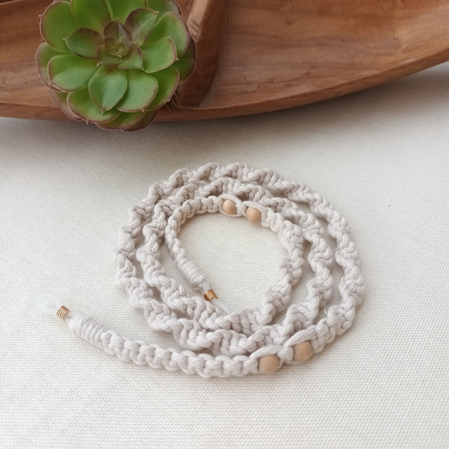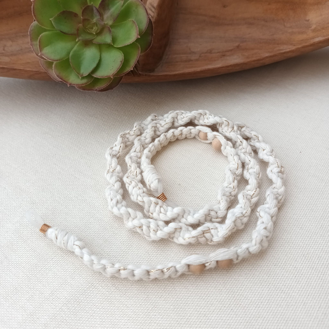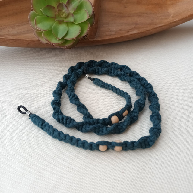 Chaque cordon est conçu à la main avec de la corde de coton recyclé. Ces cordons s’adaptent à la plupart des lunettes de vue et de soleil grâce à leurs attaches réglables universelles.Ils mesurent 72 cm.