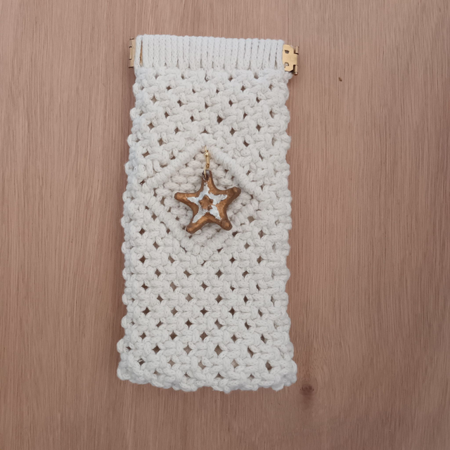 Découvrez cet étui à lunettes unique, réalisé à la main en macramé avec du coton recyclé, alliant artisanat traditionnel et respect de l’environnement. Ce modèle exclusif s’ouvre et se ferme facilement grâce à un système clic-clac pratique et sécurisé. Il vous accompagne aussi bien à la plage pour vos lunettes de soleil qu'au quotidien.