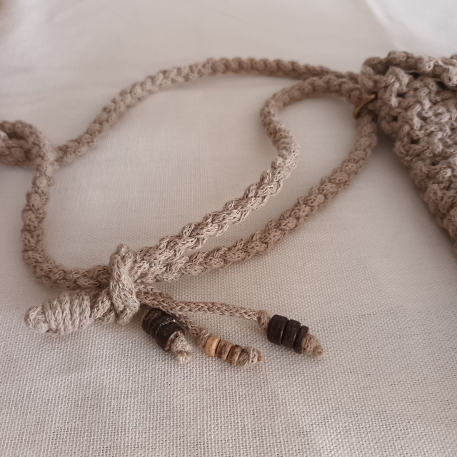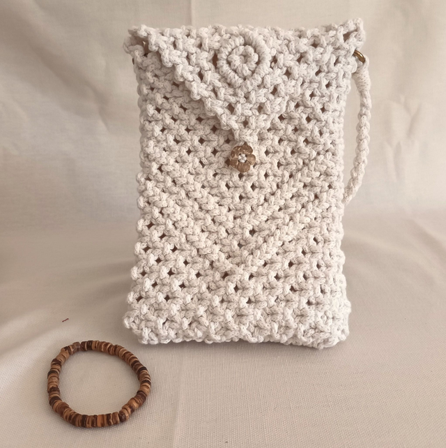 Cette pochette bandoulière macramé est un accessoire parfait pour toutes les occasions. Élégante et pratique ,elle vous permet d'avoir toujours sous la main vos papiers, votre smartphone ou votre porte-monnaie. Artisanale, elle est confectionnée à la main en macramé de coton recyclé. Elle se décline en deux coloris, naturel et sable. Pour chaque pochette bandoulière commandée, un petit bracelet élastique en perles de coco est offert!